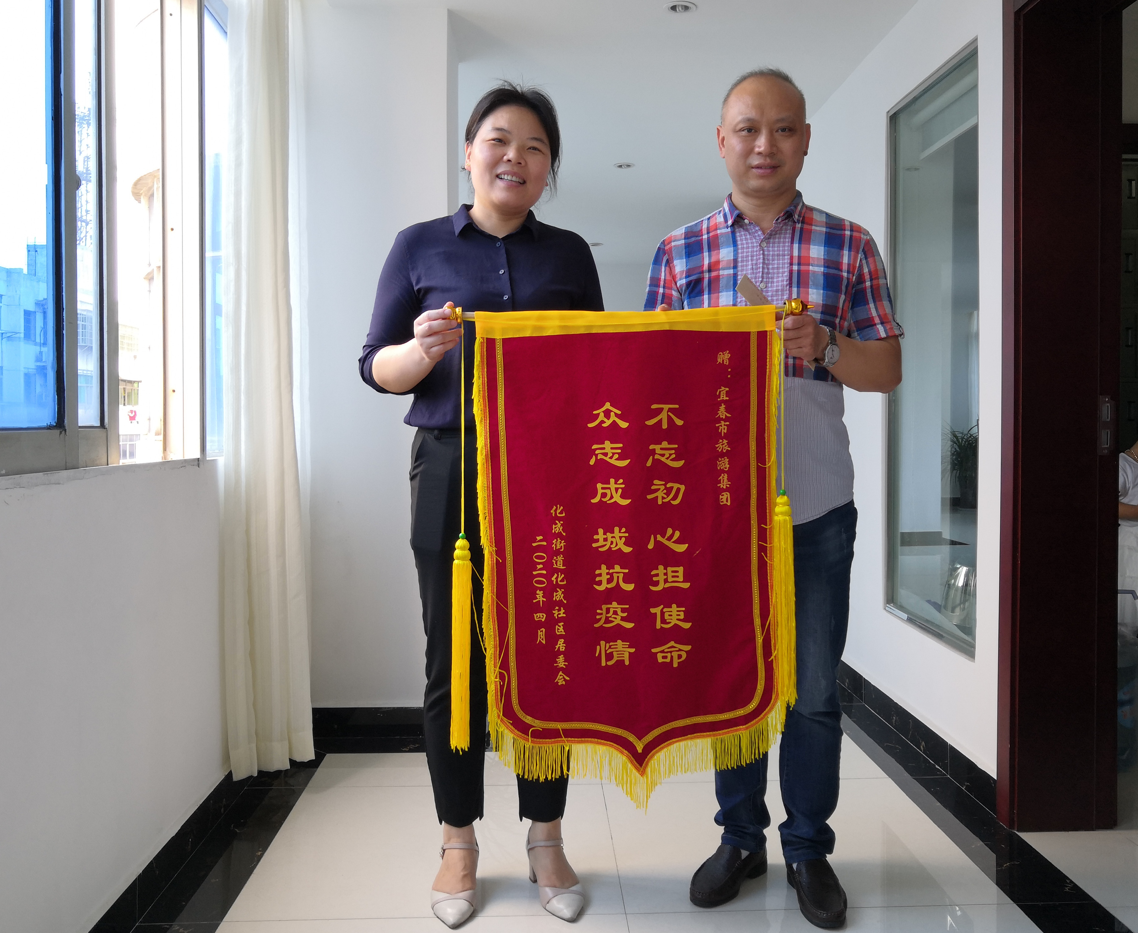 2020年5月28日下午,宜春市袁州區(qū)化成街道化成社區(qū)干部來(lái)到集團(tuán)公司,為公司在新冠肺炎疫情防控期間開(kāi)展“雙進(jìn)雙服務(wù)” 工作送來(lái)錦旗,并給公司黨員、副縣級(jí)干部易民同志寫(xiě)來(lái)感謝信,對(duì)其在參加化成社區(qū)志愿者服務(wù)工作中做出的努力和奉獻(xiàn)表示感謝。