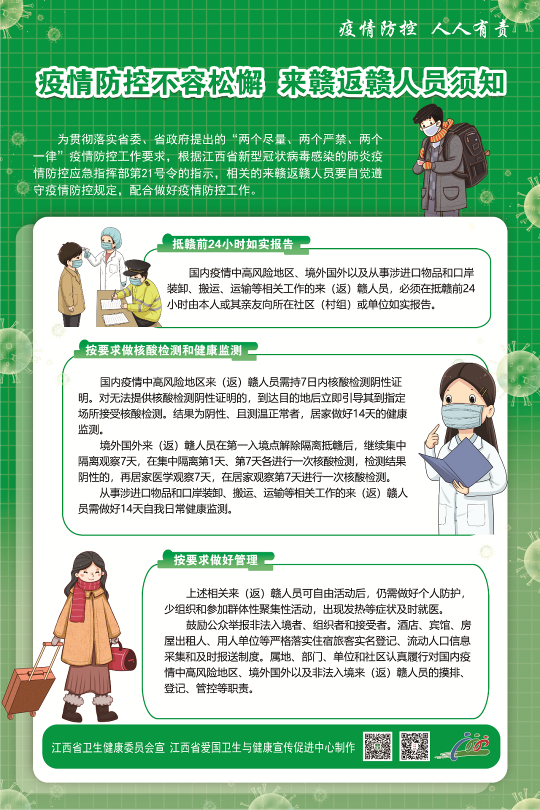 三、各級各類學(xué)校要根據(jù)疫情防控要求和教育教學(xué)進度,優(yōu)化調(diào)整學(xué)校寒假放假時間,分批次有序放假離校。寒假期間,中小學(xué)生和教師非必要不出省。在贛高校師生居住地為中、高風(fēng)險地區(qū)的暫緩回家,其他師生回家后原則上不離開所在城市,確保離校學(xué)生底數(shù)清、返家行程可追蹤、家校協(xié)同有反饋。