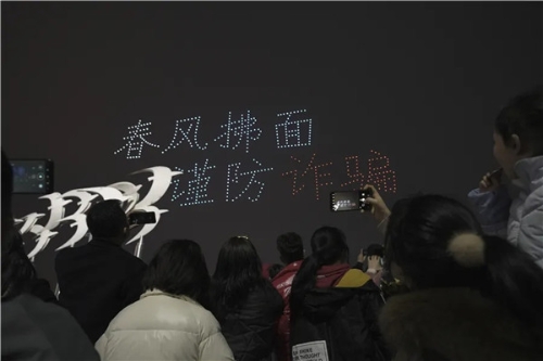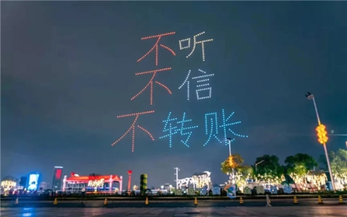 儀式結(jié)束后,一場以反電詐宣傳為主題的一江兩岸和無人機(jī)燈光秀在秋水廣場上演,吸引了廣大市民朋友駐足觀看、網(wǎng)絡(luò)轉(zhuǎn)發(fā),吹響了“春風(fēng)”行動的號角。