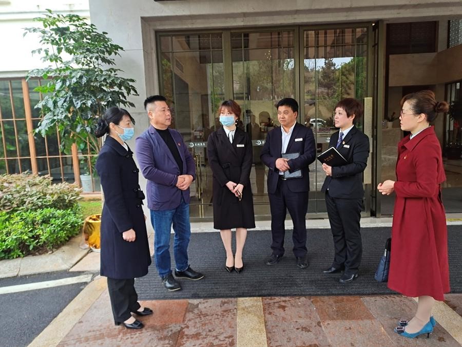 在東湖酒店站,宣講小分隊(duì)與酒店管理人員就扎實(shí)做好黨史學(xué)習(xí)教育氛圍營(yíng)造工作進(jìn)行了探討交流。