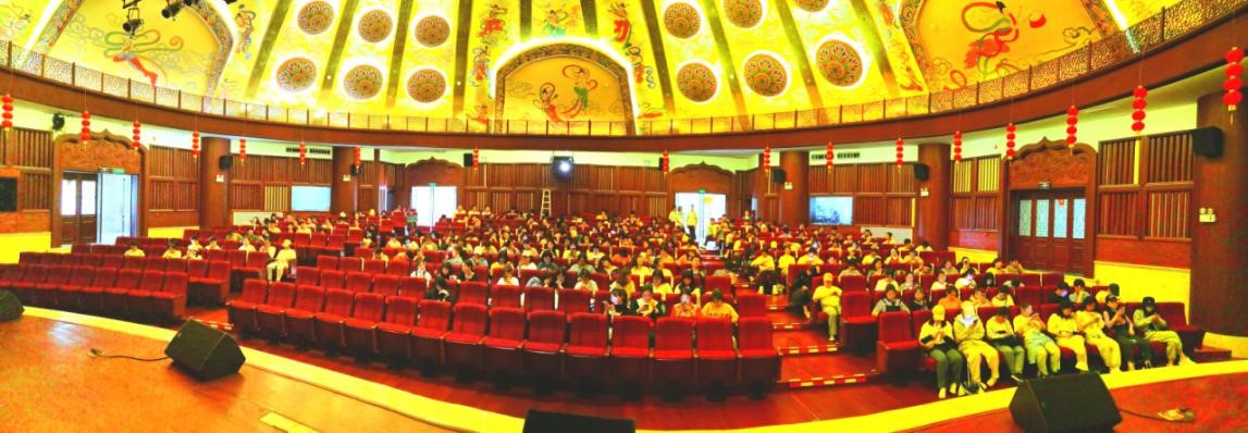 禪博園作為現(xiàn)場模擬實訓首選場地,積極做好對接服務,優(yōu)化入園程序,快速便捷地為幾百名師生短時間內(nèi)完成入園流程。在梵唄音樂廳,全體師生與景區(qū)進行了互動交流。景區(qū)講解員對宜春禪宗文化做了大概介紹,景區(qū)負責人柳旻介紹了景區(qū)的整體設(shè)計與規(guī)劃、園區(qū)營銷策略及發(fā)展歷程,并就同學們提出的問題進行解答與交流,整場交流會生動活潑,氣氛熱烈。