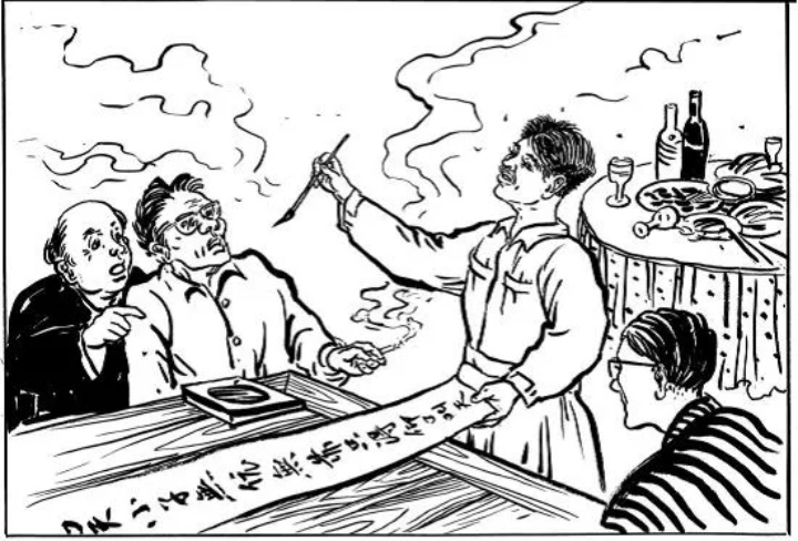 國民黨探知戴參謀是個(gè)地主家庭出身的知識分子,便挖空心思,軟硬兼施,妄想逼迫他叛變革命。于是布置圈套,設(shè)宴款待,由一個(gè)姓吳的軍官和幾個(gè)特殊賓客作陪。酒席上,幾個(gè)跳梁小丑賣弄風(fēng)雅,談古論今,題詩作對,不斷勸說戴參謀投敵叛變,戴參謀只是端然而坐,對其不理不睬。酒過三巡,戴參謀仍然不為所動,吳姓軍官賊心不死,又想出一個(gè)詭計(jì),吩咐勤務(wù)兵拿來筆墨和一張大紅紙。他應(yīng)用拆字法肢解“戴”字,在紅紙的一邊寫了一句上聯(lián):“戴先生有田有土,何必操戈入共?”寫畢,嬉皮笑臉地向戴參謀求對。戴參謀識破敵人的詭計(jì),即以其人之道還治其人之身,在紅紙的另一邊迅速寫了一句下聯(lián):“吳小子無依無靠,只得仰口叫天?!甭?lián)語針鋒相對,諷刺辛辣,弄得敵人瞠目結(jié)舌,自取其辱,只得悻悻散了席,從此打消了念頭。