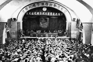 中國共產黨第七次全國代表大會于1945年4月23日至6月11日在延安楊家?guī)X中央大禮堂舉行。出席大會的共755人,其中正式代表547人,候補代表208人,代表著全黨121萬名黨員。任弼時主持開幕式,毛澤東致開幕詞和閉幕詞,并作了《論聯(lián)合政府》的書面政治報告、關于形勢和思想政治問題的報告、關于討論政治報告的結論和關于選舉的問題的講話;朱德作《論解放區(qū)戰(zhàn)場》的軍事報告和關于討論軍事問題的結論;劉少奇作《關于修改黨章的報告》和關于討論組織問題的結論;周恩來在會上作《論統(tǒng)一戰(zhàn)線》的講話。毛澤東在《論聯(lián)合政府》的報告中,科學分析了國際國內形勢,抓住了當時時局的關鍵,著重提出了中國人民強烈希望建立民主聯(lián)合政府,打敗日本侵略者,建設新中國的基本要求。他號召全黨要發(fā)揚黨的理論和實踐相結合的作風,和人民群眾緊密地聯(lián)系在一起的作風以及批評與自我批評的作風。圍繞上述報告,各代表小組、代表團進行了充分討論。任弼時、陳云、彭德懷、張聞天、陳毅、葉劍英、楊尚昆、劉伯承、彭真、聶榮臻、陸定一、烏蘭夫等20多人作了大會發(fā)言。這些報告和發(fā)言從各個方面論述黨的政治路線、軍事路線、組織路線的基本精神,總結黨的歷史經驗,并對各條戰(zhàn)線的任務和政策提出了具體意見。大會一致通過了毛澤東的政治報告、朱德《論解放區(qū)戰(zhàn)場》的軍事報告和劉少奇修改黨章的報告及新黨章。