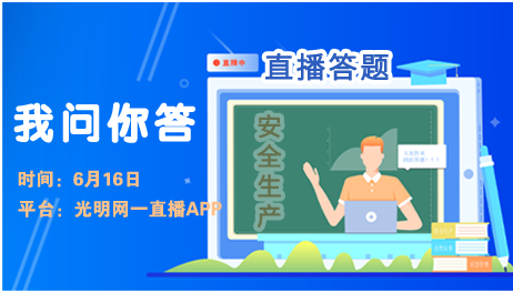 6月16日,聯(lián)合光明網(wǎng)在一直播APP,圍繞安全生產(chǎn)、生活安全、自然災害等生產(chǎn)生活中常見的安全內(nèi)容開展安全知識直播答題活動,提高民眾應急避險和自救互救能力??靵砗椭鞑セ樱黄饘W習應急知識,提升安全技能。安全知識和神秘獎品在直播間等你!
