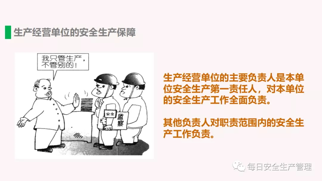 新《安全生產(chǎn)法》第三條明確提出“三個(gè)必須”:安全生產(chǎn)工作實(shí)行管行業(yè)必須管安全、管業(yè)務(wù)必須管安全、管生產(chǎn)經(jīng)營(yíng)必須管安全,強(qiáng)化和落實(shí)生產(chǎn)經(jīng)營(yíng)單位主體責(zé)任與政府監(jiān)管責(zé)任,建立生產(chǎn)經(jīng)營(yíng)單位負(fù)責(zé)、職工參與、政府監(jiān)管、行業(yè)自律和社會(huì)監(jiān)督的機(jī)制。