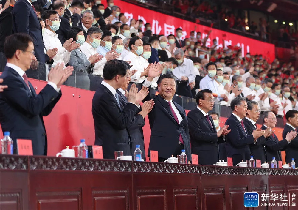 6月28日晚,慶祝中國共產黨成立100周年文藝演出《偉大征程》在國家體育場盛大舉行。習近平、李克強、栗戰(zhàn)書、汪洋、王滬寧、趙樂際、韓正、王岐山等黨和國家領導人,同約2萬名觀眾一起觀看演出。新華社記者 鞠鵬 攝