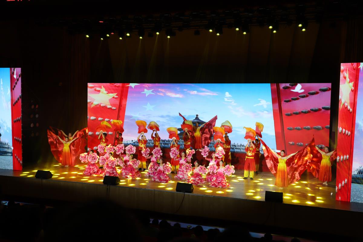晚會由旅游集團選送的開場舞《百年錦繡耀中華》拉開了序幕,分初心、贊歌、回眸、逐夢共四個篇章,通過具有時代特色的歌曲和舞蹈、配樂朗誦、情景表演、小品、三句半等多種表現(xiàn)形式,在舞美和音效等聲光電的襯托下將晚會氛圍推向高潮,達到情景融合、視覺震撼的藝術(shù)效果。