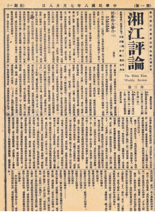 青年毛澤東在《<湘江評論>創(chuàng)刊宣言》中寫道:“時機到了!世界的大潮卷得更急了!洞庭湖的閘門動了,且開了!浩浩蕩蕩的新思潮業(yè)已奔騰澎湃于湘江兩岸了!順他的生,逆他的死。”