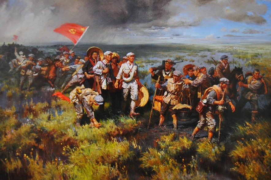 八十多年前的一個夜晚,夜幕籠罩著無邊無際的草地,簇簇篝火映著一群又一群饑餓難耐的紅軍指戰(zhàn)員。萬籟俱寂的草地夜空,突然飛來用法語演唱的《馬賽曲》的歌聲。循著歌聲,只見一位颯爽的女紅軍正面對夜空縱情歌唱《馬賽曲》。徐特立、成仿吾等受到《馬賽曲》的感染,請不自己地站起,應(yīng)和起來。毛澤東循著歌聲走到近前,他駐步靜靜地傾聽。《馬賽曲》的歌聲終止了,但草地的夜空依然余音不絕。毛澤東說“好!唱得好!”帶頭鼓起了掌,“同志們!我從你們的歌聲中不僅感到了力量,忘記了饑餓,而且還看到了中國革命最美好的希望!”