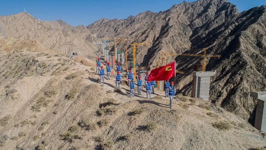 ▲ 中交集團(tuán)堅持圍繞生產(chǎn)抓黨建、抓好黨建促生產(chǎn),通過建立黨員示范崗、黨員突擊隊(duì)等,推動基層黨組織戰(zhàn)斗堡壘作用和黨員先鋒模范作用有效發(fā)揮。圖為中交集團(tuán)新疆烏尉公路包PPP項(xiàng)目依若高速施工現(xiàn)場,項(xiàng)目黨員們揮舞著黨旗。