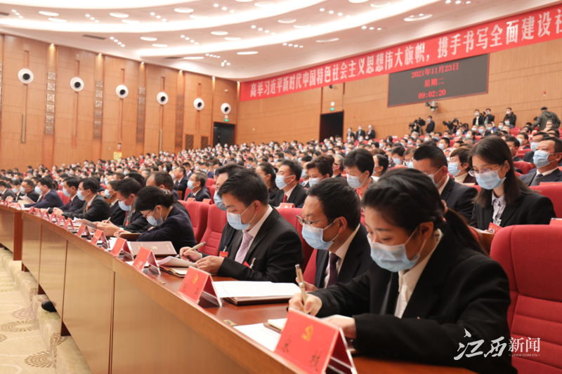 大會主題是:高舉習(xí)近平新時代中國特色社會主義思想偉大旗幟,深入貫徹落實(shí)習(xí)近平總書記視察江西重要講話精神,動員全省廣大黨員和干部群眾,從黨的百年奮斗重大成就和歷史經(jīng)驗(yàn)中汲取智慧和力量,大力弘揚(yáng)偉大建黨精神和井岡山精神、蘇區(qū)精神、長征精神,咬定“作示范、勇爭先”的目標(biāo)要求,進(jìn)一步解放思想、開拓進(jìn)取,攜手書寫全面建設(shè)社會主義現(xiàn)代化江西的精彩華章。
