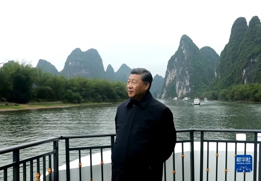2021年4月25日至27日,中共中央總書記、國(guó)家主席、中央軍委主席習(xí)近平在廣西考察。這是25日下午,習(xí)近平在桂林市陽朔縣,乘船考察漓江陽朔段。