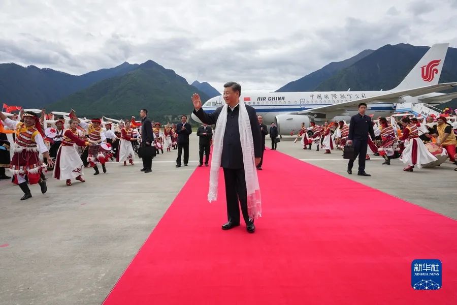 2021年7月21日至23日,中共中央總書記、國(guó)家主席、中央軍委主席習(xí)近平來到西藏,祝賀西藏和平解放70周年,看望慰問西藏各族干部群眾。這是21日上午,習(xí)近平乘坐飛機(jī)抵達(dá)林芝米林機(jī)場(chǎng),西藏各族干部群眾載歌載舞,熱烈歡迎習(xí)近平總書記的到來。