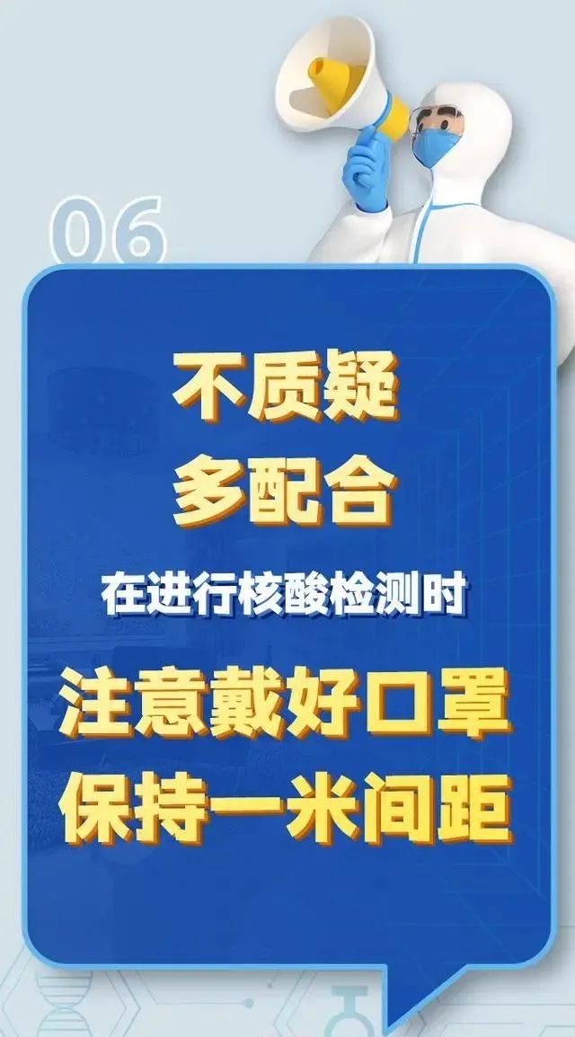 5.核酸采樣時(shí)不要再喊“啊”。喊“啊”時(shí)可能會(huì)呼出大量病毒,并在采樣區(qū)域形成氣溶膠,造成采樣點(diǎn)環(huán)境直接污染,等下一位檢測(cè)時(shí),可能無(wú)法避免地將帶病毒的氣溶膠吸入呼吸道。