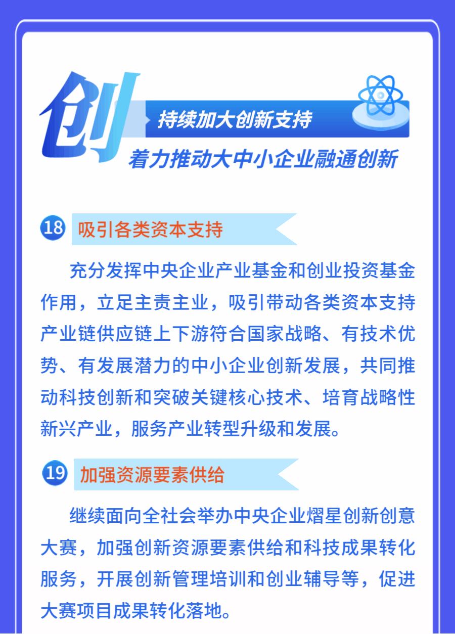《通知》主要圍繞支付賬款、減免房租、降低成本、優(yōu)化供給、融通資金、融通創(chuàng)新、協(xié)同發(fā)展等7方面提出27條舉措,解中小企業(yè)“燃眉之急”,推動央企與中小企業(yè)共同“做大蛋糕”。