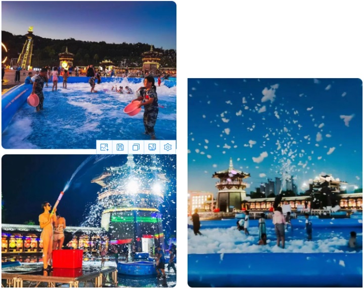 夜幕降臨,華燈初上,微風(fēng)拂面,落日余暉映照下的禪博園分外美麗。來(lái)自省內(nèi)外的游客、以及宜春四面八方的市民蜂擁而至,萬(wàn)眾期待的夜游燈光秀華麗上演,數(shù)十萬(wàn)盞LED燈以各種造型被同時(shí)點(diǎn)亮,星星點(diǎn)點(diǎn)的燈光將整個(gè)園區(qū)點(diǎn)綴得猶如璀璨的銀河一般奪目,通過(guò)將藝術(shù)燈光、全息投影等新技術(shù)有機(jī)結(jié)合,空間視錯(cuò)覺(jué)與光影特效完美融合,游客身臨其境,沉浸漫步在宇宙太空之中。景區(qū)內(nèi)除了燈光秀,更有夏沫潑水節(jié)、套圈、撈魚等兒童喜愛(ài)的游戲攤位也是五花八門,應(yīng)有盡有,孩子們?cè)诩胰说呐惆橄峦娴貌灰鄻?lè)乎,享受著夜晚難得的親子時(shí)光。