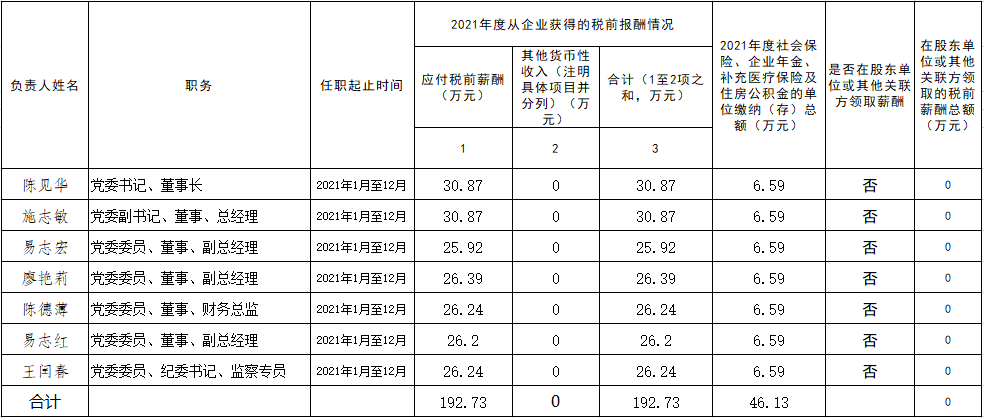 根據(jù)《市屬企業(yè)負(fù)責(zé)人薪酬信息披露辦法》,現(xiàn)將本企業(yè)負(fù)責(zé)人2021年度薪酬及福利性待遇情況披露如下: