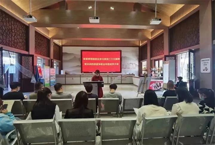 2022年11月9日下午14:00,宜春市禪都文化博覽園召開學(xué)習(xí)貫徹二十大精神暨決戰(zhàn)四季度爭取全年勝動員大會。禪博園負責(zé)人柳旻發(fā)言,全體員工參加會議。