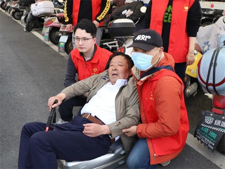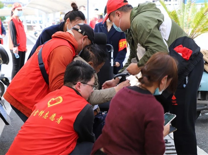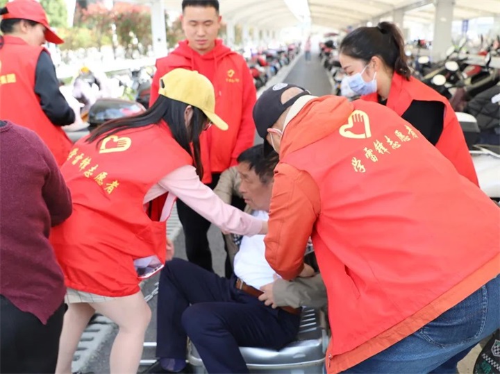 在前往高鐵站開展學(xué)雷鋒志愿活動(dòng)途中,突遇一名外地旅客突發(fā)身體不適,全身無力癱倒在地,志愿者們見狀趕忙一起將老人攙扶至陰涼處,為老人服下速效救心丸,并關(guān)切地詢問老人是否有過往病史,身體具體有哪些不適。并迅速聯(lián)系高鐵站服務(wù)人員推來輪椅,緩解老人的不適。與此同時(shí),志愿者們一方面協(xié)助通知遠(yuǎn)在上海的老人家屬,一方面提醒隨行人員撥打120急救電話,將老人移交給前來的醫(yī)護(hù)人員接收后才放心離去。