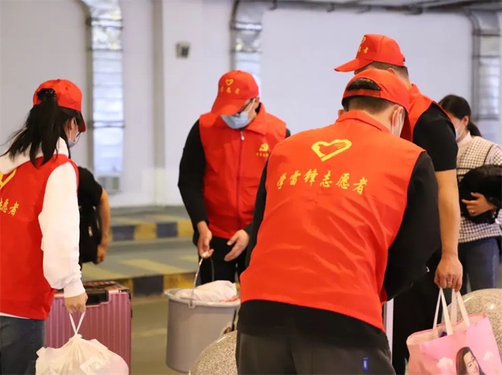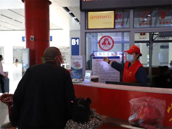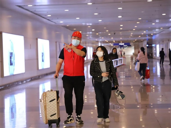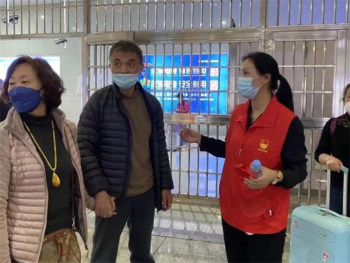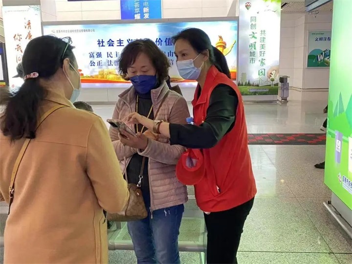 正值旅客往返高峰期,趕時(shí)間成為旅客出行的一大難題。在候車廳與旅客進(jìn)站區(qū),志愿者們不辭辛苦為旅客提拉行李,指引進(jìn)站路線,提高了旅客乘車效率,也保障了旅客出行安全。