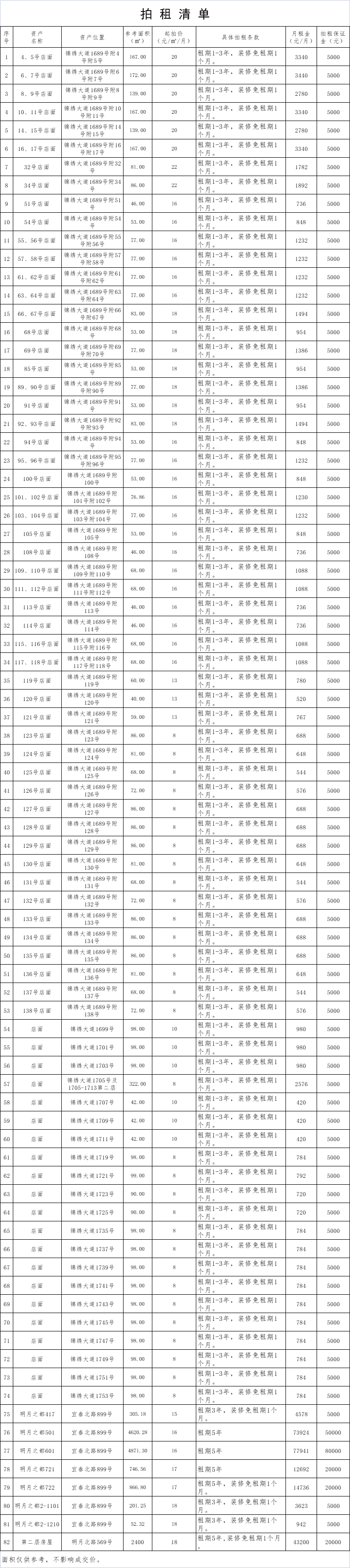 以上標(biāo)的詳情見拍租清單。