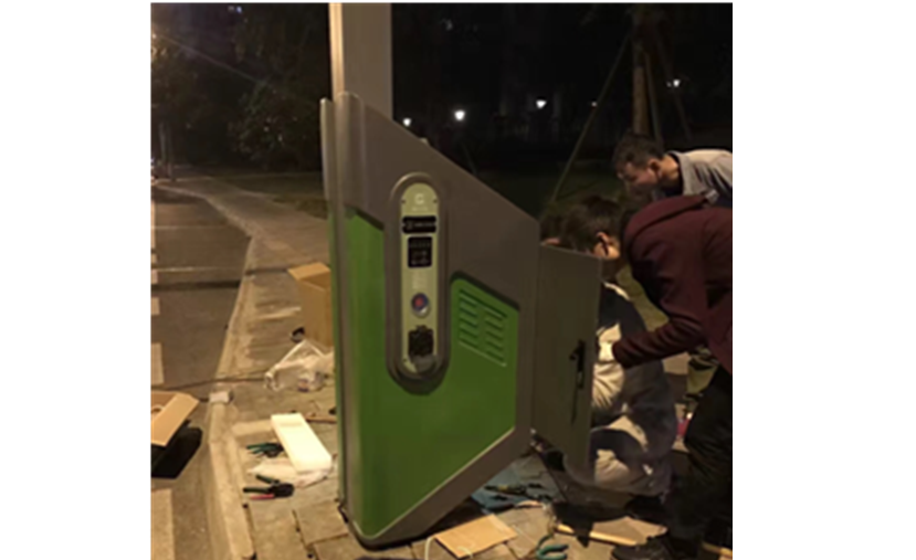本次試點工作共安裝多功能智慧路燈兩柱。該燈以現(xiàn)代式的燈桿為主體,采用帶智能控制的LED照明,具有良好的節(jié)能減排作用。此外,本次安裝的智慧路燈巧妙的加載了新能源汽車充電、視頻監(jiān)控、環(huán)境信息監(jiān)測、WIFI覆蓋、手機補電及便民觸控屏等功能,實現(xiàn)了科技與設計的完美融合。