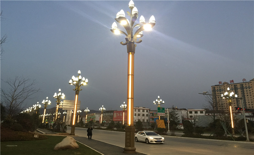 底座部分印有“秀美商洛”“秦嶺福地”的字樣,燈桿中部加裝節(jié)日氛圍燈帶,營造出濃濃的節(jié)日氛圍。