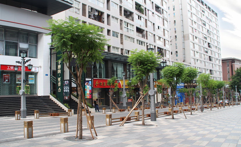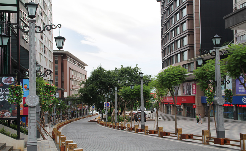 由于金港國際步行街屬于國際化綜合性商業(yè)物業(yè)區(qū),又距離重慶國際新機場較近,人流量車流量都很大,對燈光的要求較高?!懊駠L(fēng)情”燈高16.5米,主光源和裝飾光源皆采用LED,彰顯節(jié)能環(huán)保理念?!懊駠L(fēng)情”燈既滿足了步行街的照明需求,又顯示出濃郁的民國風(fēng)情,形成了獨具特色的城市景觀。