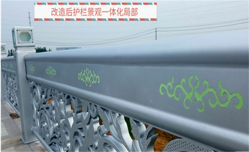五號橋處于鄂爾多斯機場到鄂爾多斯市的康巴什區(qū)和東勝區(qū)的必經(jīng)之路,具有城市迎賓大道的性質(zhì)。原護欄系鑄鐵件,不僅造型簡單,缺乏地域文化表現(xiàn),而且銹蝕嚴重,有礙觀瞻,應(yīng)予更換。