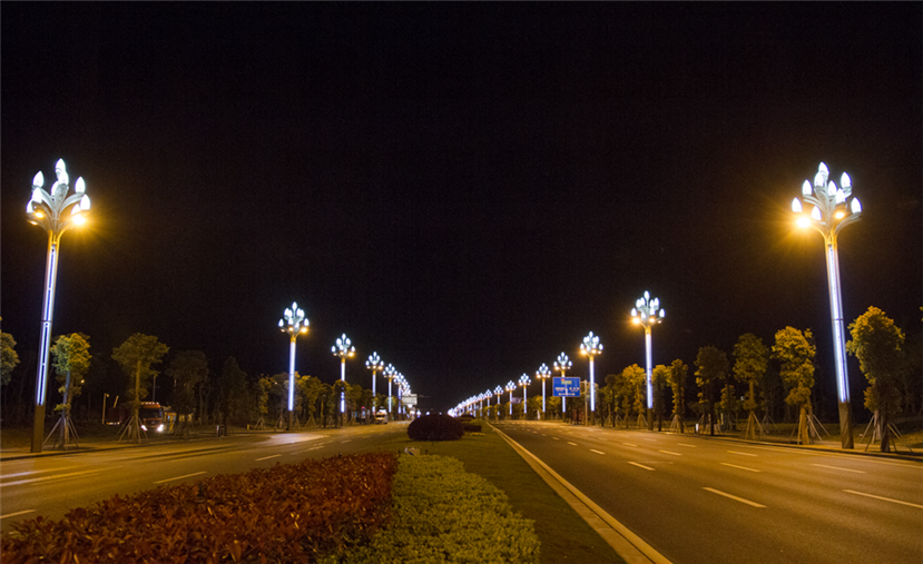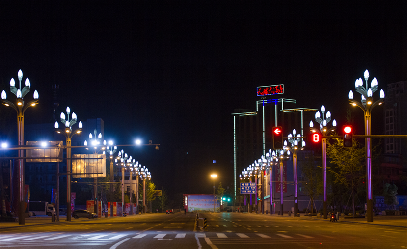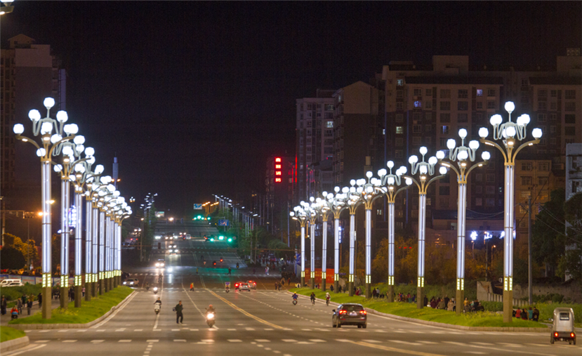 為進一步完善城市照明效果,鞏固建設(shè)成果。營山縣公共事業(yè)管理局于2016年底至2017年初對民政局至一環(huán)路南北段以及芙蓉大道一段進行了整體的道路照明路燈升級改造,四川華體照明科技股份有限公司根據(jù)兩條道路的基本情況,結(jié)合當?shù)匚幕厣?,分別設(shè)計并安裝了春意盎然景觀燈和芙蓉中華燈。