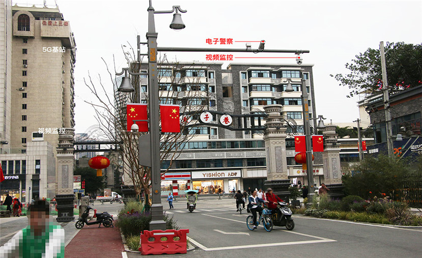 5G基站、紅綠燈等與路燈合桿,讓成都這個特色街區(qū)更有特色