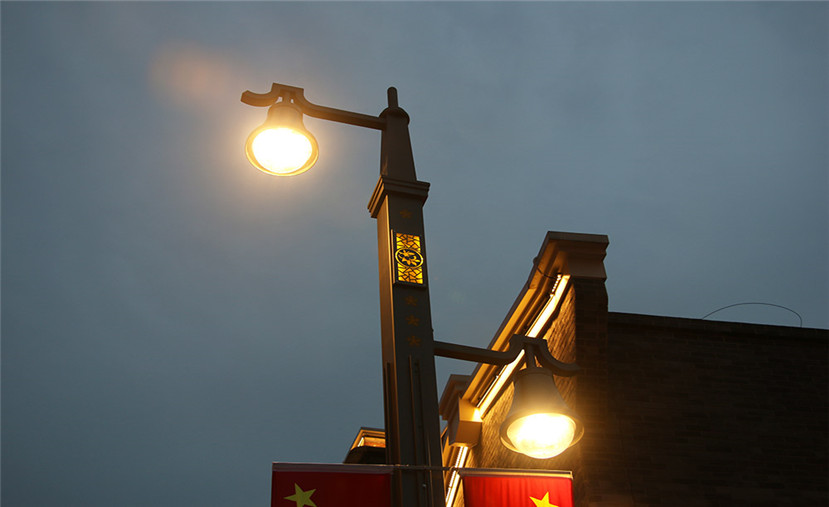 華體科技依托自身強大的設計能力,為業(yè)主方量身定制了具有多桿合一功能的民國風情文化路燈,讓路燈也成為棗子巷特色街區(qū)的重要組成部分。