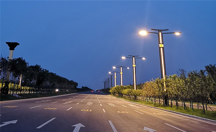 本次設(shè)計,在保證路燈道路照明的基礎(chǔ)上,華體科技在燈桿中間設(shè)計了仿云石材質(zhì)的發(fā)光帶,讓路燈在白天和夜間都更具結(jié)構(gòu)美和顏色美,兼顧道路照明和景觀裝飾照明。