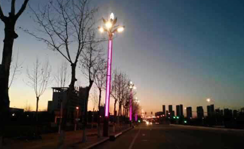 科技大道,位于煙臺高新區(qū),是煙臺“智慧城市”的試點區(qū)域。2015年底,春意盎然的到來為整個園區(qū)增添無限生機和活力。它寓意春季萬物復蘇,百花齊放,城市的經(jīng)濟蒸蒸日上。春意盎然高15米,主要是通過花卉造型進行抽象設(shè)計而來。燈桿中部加裝LED氛圍光帶,使夜間照明更加絢麗;燈體內(nèi)部安裝智能控制系統(tǒng),使照明高效節(jié)能、綠色環(huán)保,另外燈桿上安裝攝像頭,為路燈裝上“眼睛”,實現(xiàn)了多平臺的交互運用