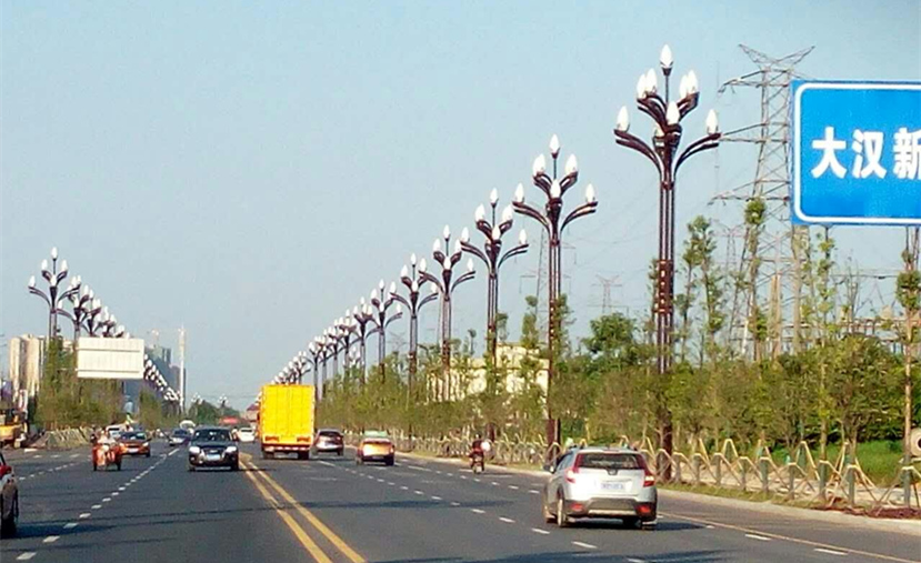 夾山大道,是石門縣縣城主干道之一。 為改善夾山大道目前照明效果不佳的現(xiàn)狀, 2016年1月,石門縣城區(qū)道路提質(zhì)改造項目(夾山大道)全面啟動,四川華體照明科技股份有限公司根據(jù)夾山大道的道路情況以及當(dāng)?shù)氐奈幕兀O(shè)計并安裝了“茶禪一味”八叉九火玉蘭燈。