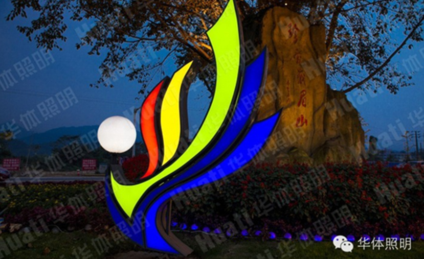 鳳凰明珠共兩組,安裝于峨眉大排檔廣場。鳳凰,是傳說中的百鳥之王,羽毛美麗,常是天下太平祥瑞的象征。燈光小品鳳凰明珠以鳳凰為創(chuàng)意主體,經(jīng)過提煉與簡化的藝術(shù)表現(xiàn)手法,呈現(xiàn)出鳳凰嘴銜明珠的美好意象。五彩的鳳凰羽翼以濃厚的感情色彩表達了對市民游客平安吉祥的祈福,同時也表達了對于旅博會圓滿成功舉行的美好祝愿。