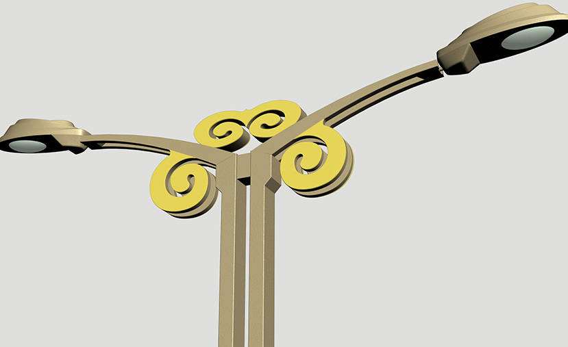 燈型采用漢代“云氣圖”元素,通過現(xiàn)代的造型結構與中國漢代經(jīng)典的元素相結合,加入了“云氣圖”造型,內部加裝LED裝飾光源,夜幕中通過內透光的形式,勾勒出“云氣圖”造型的輪廓,使得“祥云之氣”簡單又具有典型的漢代文化氣息。
