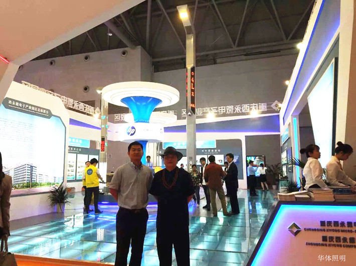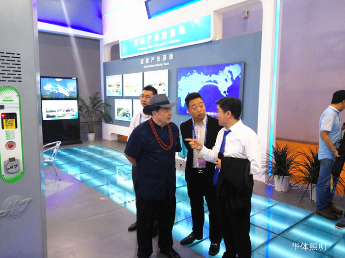 華體照明董事長(zhǎng)兼總裁梁熹和CDO李代雄出席展會(huì)