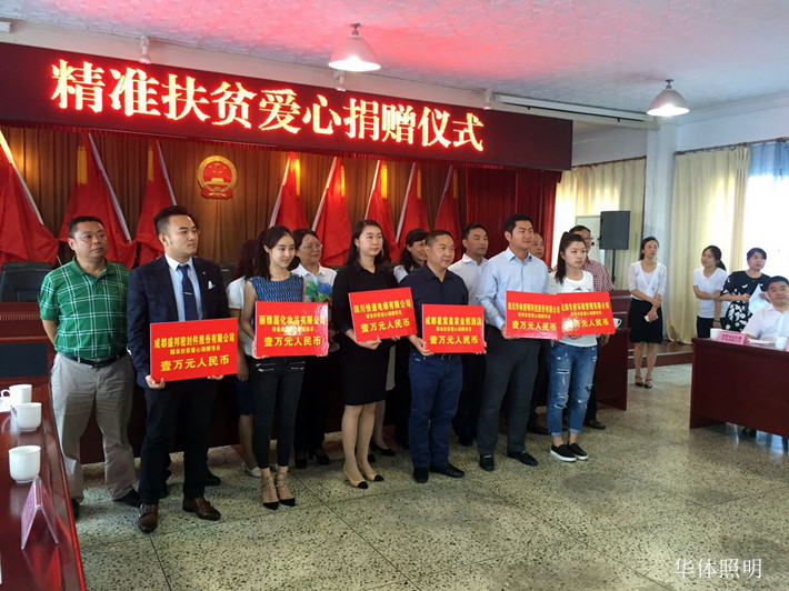 2016年5月20日上午,雙流區(qū)(公興)“精準(zhǔn)扶貧愛(ài)心捐贈(zèng)”儀式在公興街道辦事處舉行,區(qū)委常委、統(tǒng)戰(zhàn)部部長(zhǎng)、總工會(huì)主席蔣莉,區(qū)委統(tǒng)戰(zhàn)部常務(wù)副部長(zhǎng)潘萬(wàn)春,區(qū)委統(tǒng)戰(zhàn)部副部長(zhǎng)、區(qū)工商聯(lián)黨組書(shū)記杜小娟等領(lǐng)導(dǎo)出席儀式。四川華體照明科技股份有限公司董事長(zhǎng)兼總裁梁熹受邀參加捐贈(zèng)活動(dòng)。據(jù)悉,此次捐贈(zèng)活動(dòng)共籌集善款32萬(wàn)元,區(qū)紅十字會(huì)將設(shè)立專(zhuān)門(mén)賬戶進(jìn)行管理,確保精準(zhǔn)放款。