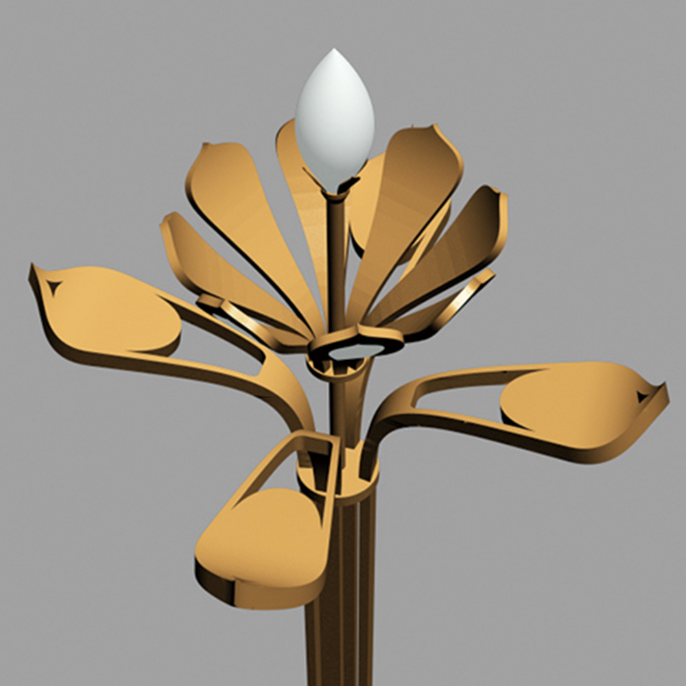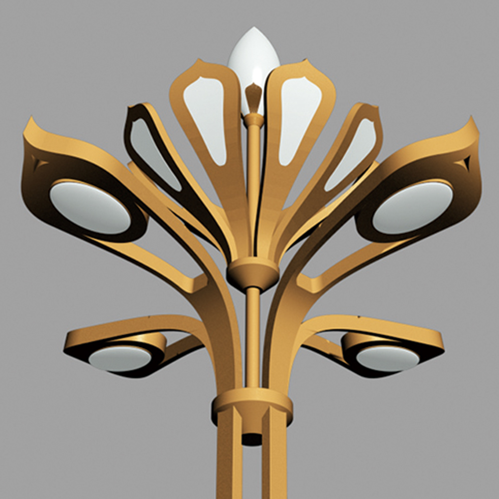 燈型整體造型以蓮花含苞待放的外形為設(shè)計元素,結(jié)合華燈造型特征,達到功能與景觀照明為一體的戶外燈具;