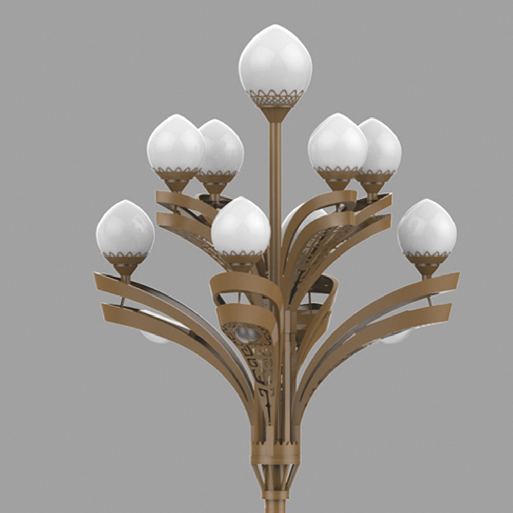 該燈可以將LED光源巧妙的配置于戶外文化定制燈具中,代替?zhèn)鹘y(tǒng)鈉燈及節(jié)能燈光源,使用革命性創(chuàng)新,在不影響使用及美觀的情況下,降低該類裝飾性景觀燈的功率密度,且在桿體內(nèi)側(cè)加裝華體單體智能照明管理系統(tǒng)。