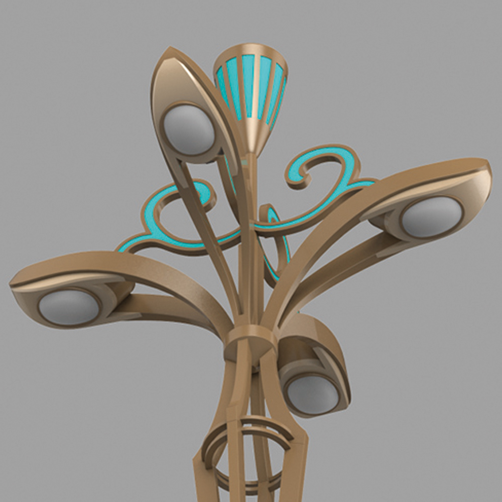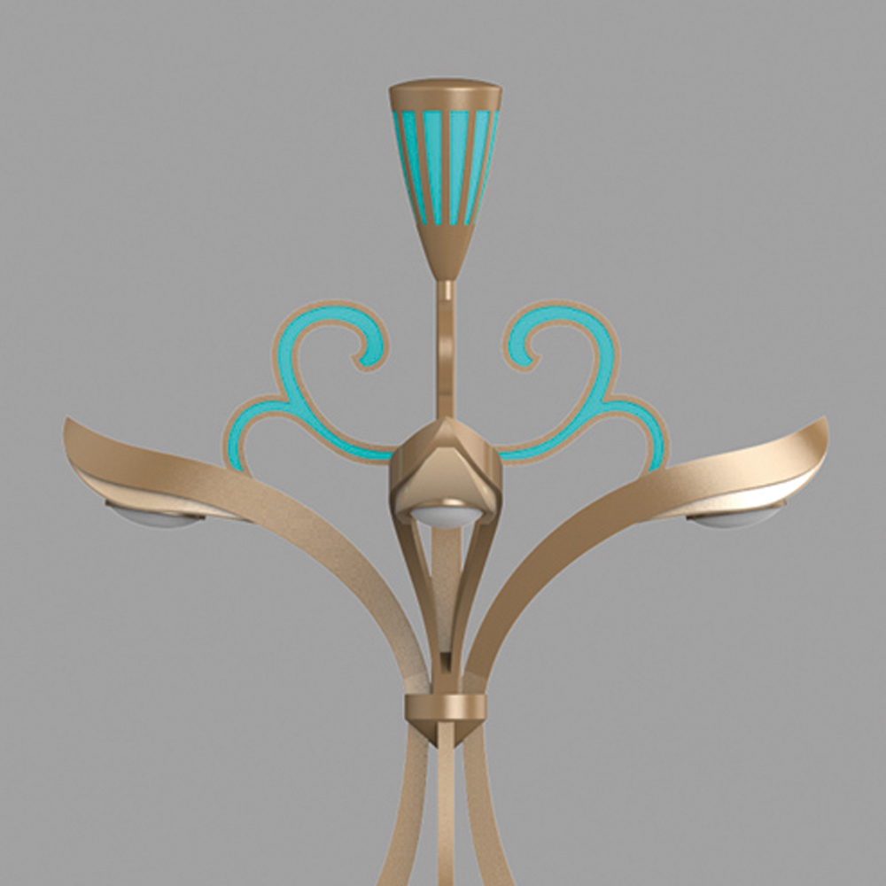 燈型以蓮花為創(chuàng)作元素,經(jīng)過設計者的提煉,將蓮花與花瓶的形態(tài)相結合;