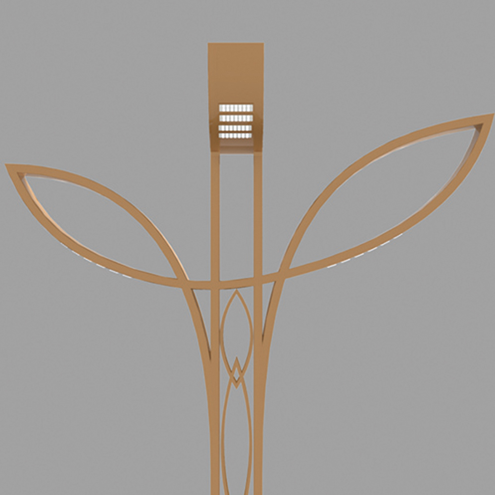 此燈型為功能性道路景觀燈。用于城市主干道及景觀大道,也可用于廣場(chǎng)及公共場(chǎng)所的出入口;;