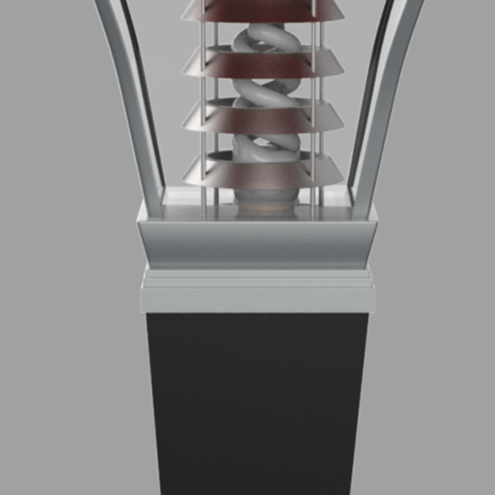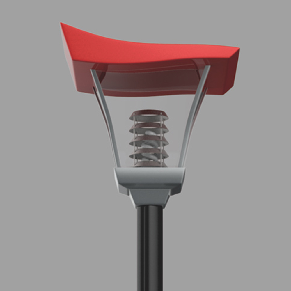 燈頭部分似一面迎風(fēng)飄揚(yáng)的紅旗,帶來一種靈動活潑的歡樂感,也象征著向上不屈的革命精神。嚴(yán)肅且活潑,動靜皆宜。