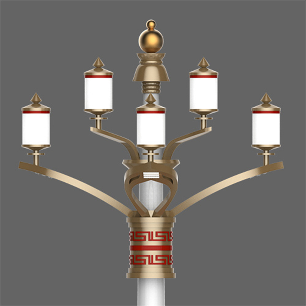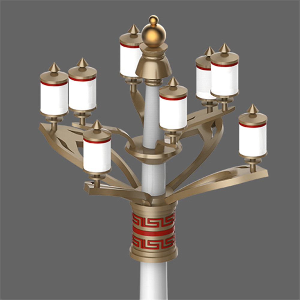 設計以蓮花為元素構成燈臂,裝飾光源為藏傳佛教轉經筒演化而來,蘊含佛法光芒四射之意。白塔形式的底座表現(xiàn)濃厚的藏地色彩。