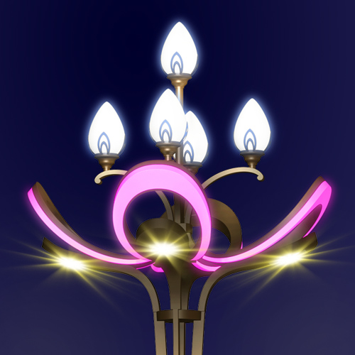 下方安裝了主光源,與兩側(cè)燈臂處燈光融為一體,交錯互映,熠熠生輝。